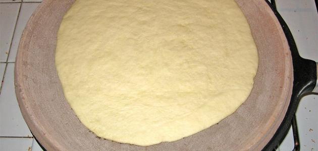 - ندعك العجينة جيّداً، ونتركها حتّى ترتاح لحوالى ساعة أو أكثر، حتّى يتضاعف حجمها.