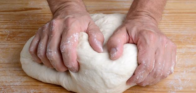 - نضيف باقي المكوّنات إلى الخليط، ونعجنها باليدّ جيّداً حتى نتأكّد من امتزاجها معاً، ونضيف إليها الخميرة، ونعجنها جيّداً إلى أن تتماسك وتكون العجينة طريّةً.