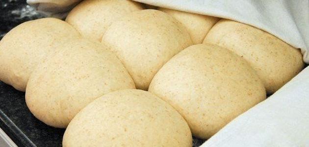 - تُوضع العجينة بعد ذلك في وعاء مرشوش بالدقيق أو الزيت، وتُترَك مغطاة مدة ساعة؛ حتى يتضاعف حجمها، وتخمر.